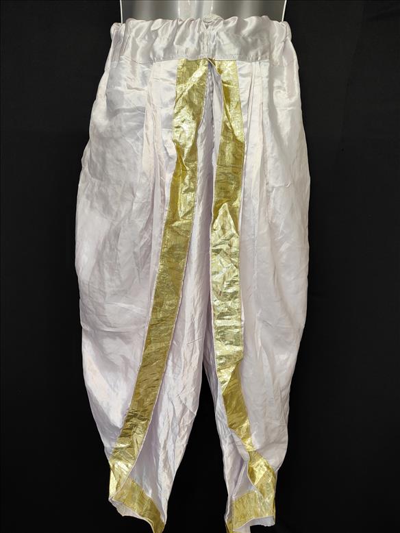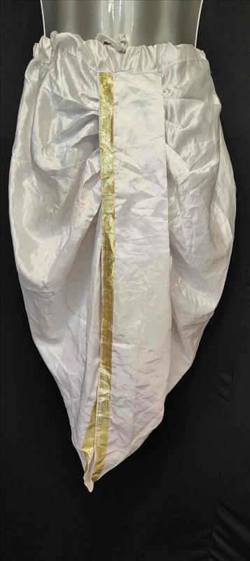 3834 WHITE PITAMBER DHOTI SATIN GOLDEN BORDER